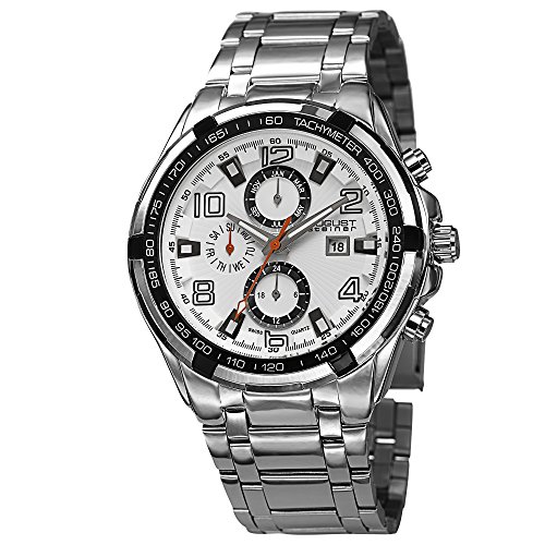 -. Binding : Watch -. Brand : August Steiner -. Color : Silver/Black/Grey/Gun/White/Red/ -. Department : mens -. EAN : 0848572043168 -. Feature : Multifunction features include month, day, and GMT (24 hour) sub dials; date window at the 3 o'clock / Gun, luminescent, hands and hour markers on the white dial / Swiss-quartz movement / Case diameter: 47mm / Water resistant to 33 feet -. IsAdultProduct : 0 -. Label : August Steiner -. Manufacturer : August Steiner -. Model : AS8127SSW -. MPN : AS8127SSW -. PackageQuantity : 1 -. PartNumber : AS8127SSW -. ProductGroup : Watch -. ProductTypeName : WATCH -. Publisher : August Steiner -. Studio : August Steiner -. Title : August Steiner Men's AS8127SSW Analog Display Swiss Quartz Silver Watch -. UPC : 848572043168
