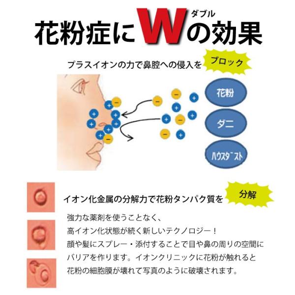 高イオン化による電位差で花粉の細胞膜を破壊!