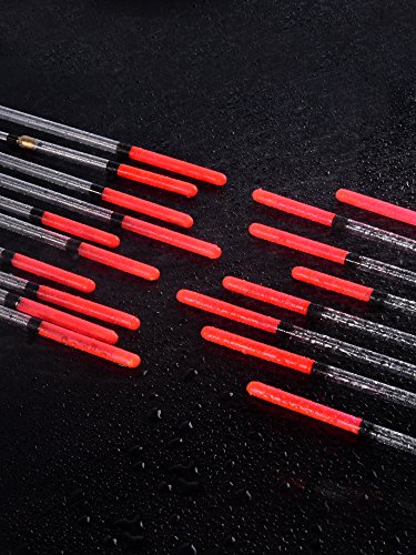 -. Feature : 5 Sizes: 11 cm, 13 cm, 15 cm, 17 cm and 19 cm in lengths, each measures 6 mm in width, can meet your different fishing needs / Colors: the body part of the float is clear, and the float tail is red, which is obvious and eye-catching, you can see the float clearly from far places / Features: made of plastic with uniform texture and good buoyancy, lightweight and sensitive, could get into water fast with small resistance, fast turning over with already drilled hole for fishing thread / Non weighted floats: as you see in the picture, the golden parts are painted, but they are part loaded with plastic block, you can still use these floats directly / Note: when in summer, do not store them in hot places; After use, wipe clean with soft paper or clothes; Store them in boxes for floats