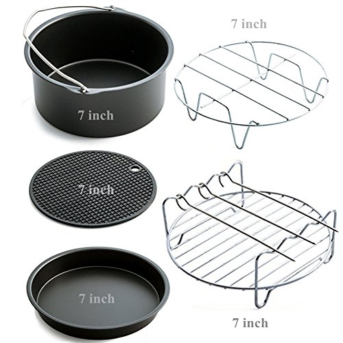 PERFECT FITS MORE BRANDS :Air fryer accessories perfect fits Gowise Phillips and Cozyna or More Brand. Each accessory perfect fit all standard air fryer (3.7QT)to XL air fryers(5.8QT).The size of the accessories is 7 inches.