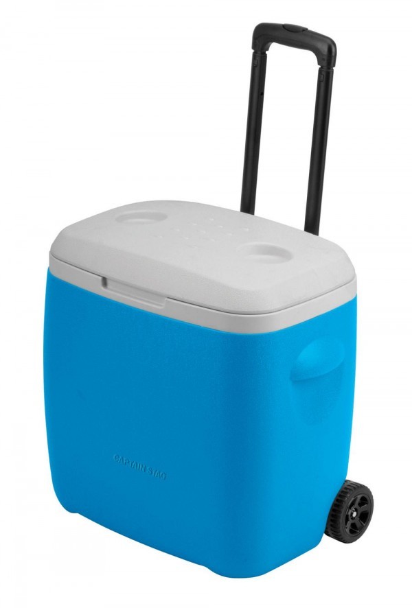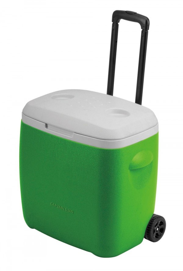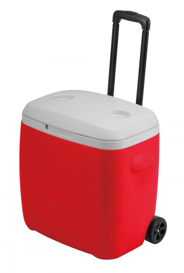 | タイヤ付きのクーラーボックス。 |