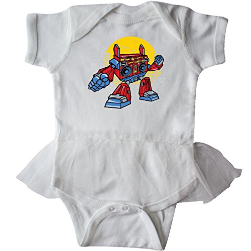 Product DescriptionBoombox Robot style on Infant Tutu Bodysuit featuring a cool graphic design that's retro in style. Love robots and the 80s? Hurry and buy a shirt!0