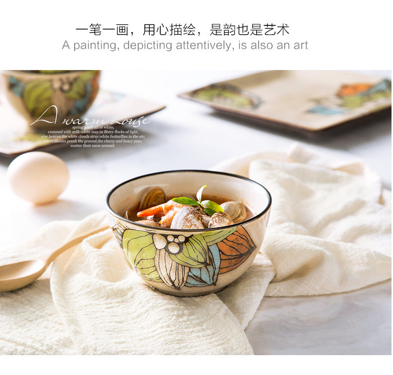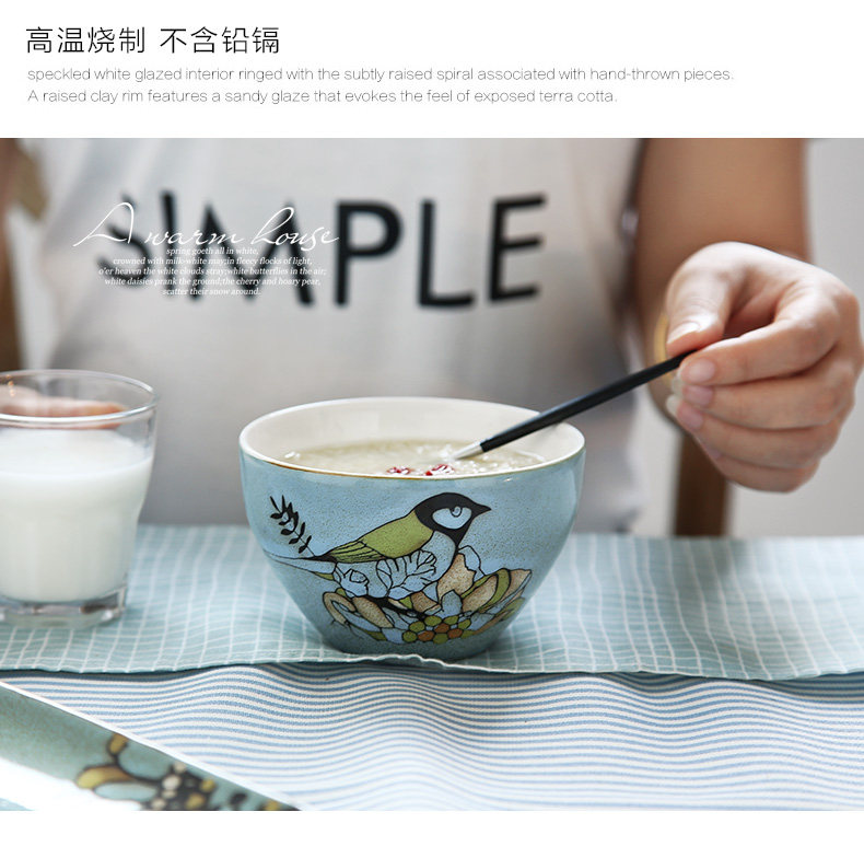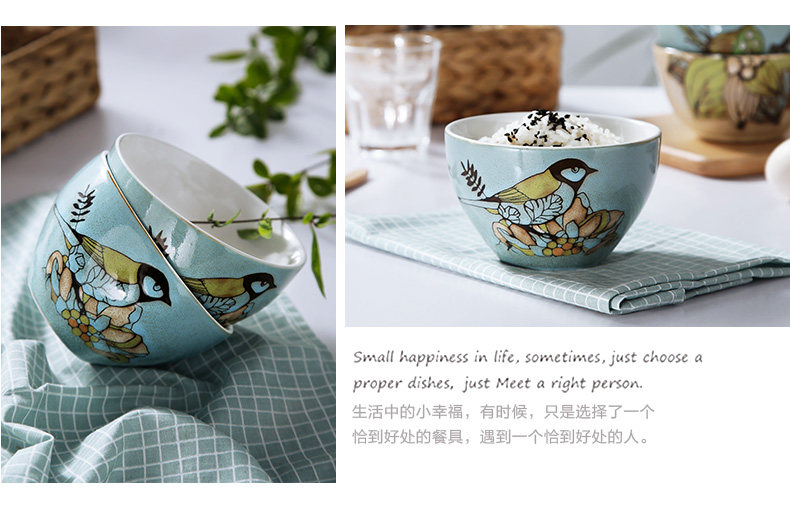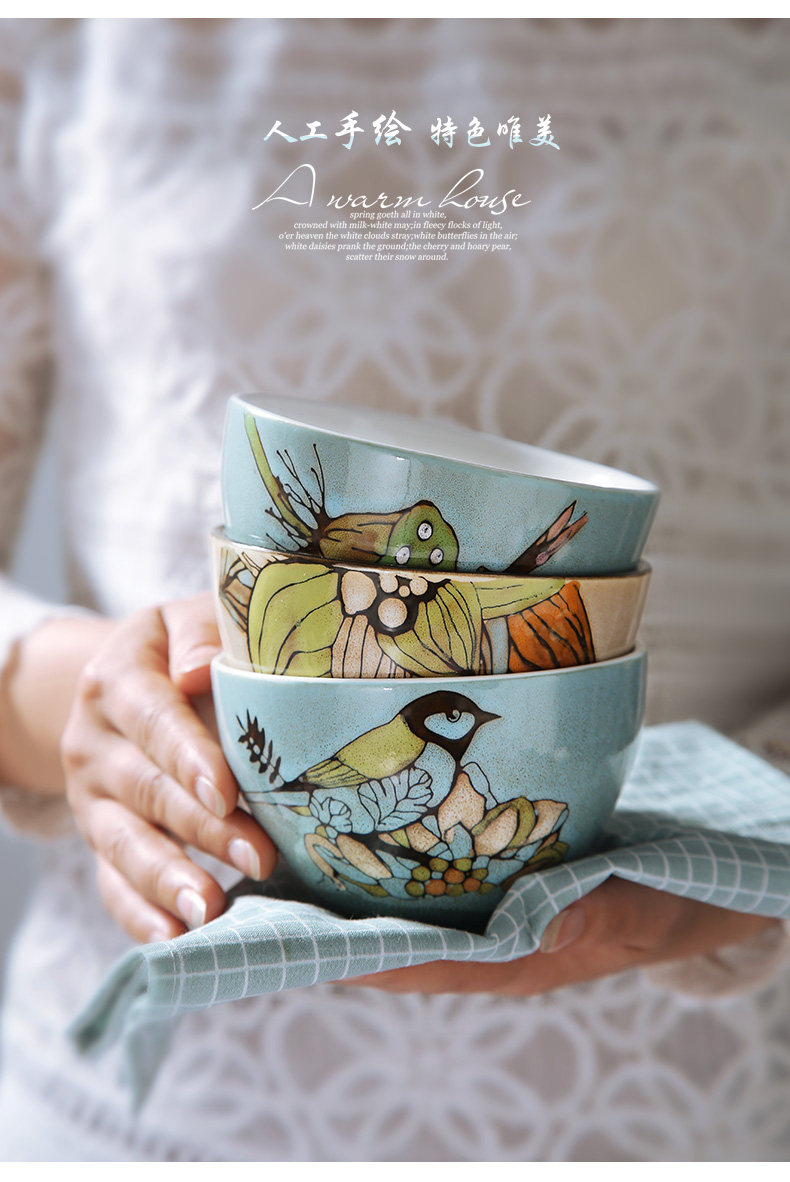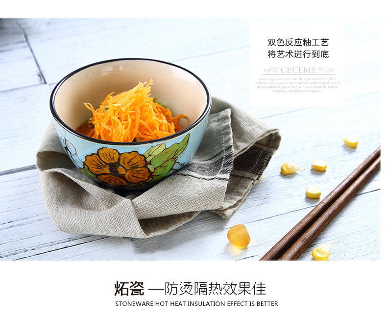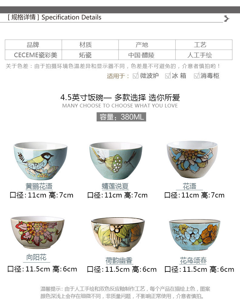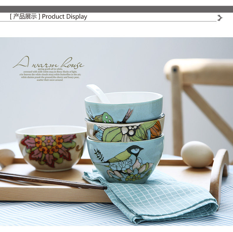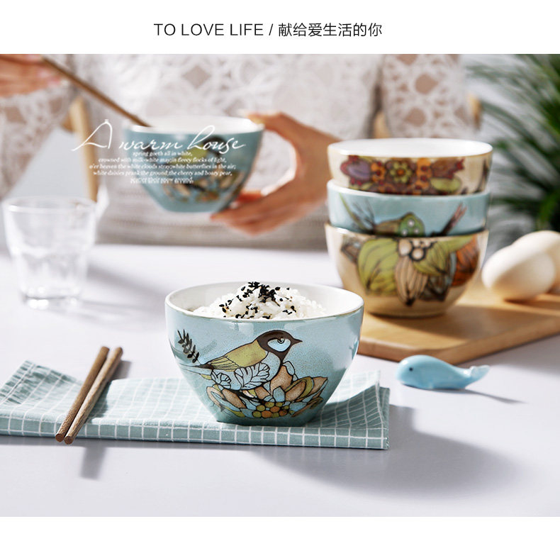 4.5寸饭碗套装创意防烫家用吃饭碗手绘加厚米饭小碗个性陶瓷餐具