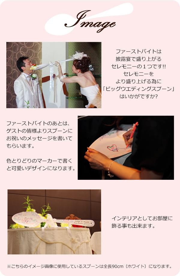| ファーストバイトは、披露宴で盛り上がるセレモニーの1つです。超デカスプーンでサプライズな演出はいかがですか?楽しい思い出になることと思います。御結婚の贈り物としても最適です。 |