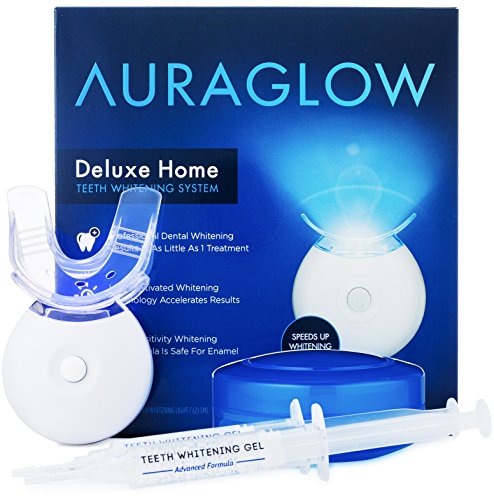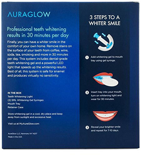 -. Title : AuraGlow Teeth Whitening Kit, LED Light, 35% Carbamide Peroxide, (2) 5ml Gel Syringes, Tray and Case
