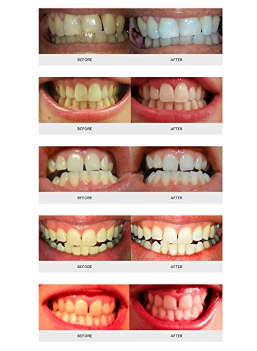 -. Feature : Teeth whitening kit includes accelerator light that speeds up the whitening process. LED light contains 5 bulbs for more power and has a built-in timer with beeper so you can easily keep track of your whitening session time. / Kit includes (2) 5mL teeth whitening gel syringes, containing 35% carbamide peroxide and a total of 20+ whitening treatments. Gel is made in USA, gluten-free, kosher, safe for enamel and produces no tooth sensitivity. / Mouth tray requires no molding or boiling, which means tray fits any mouth and allows you to whiten the top and bottom teeth at the same time comfortably. / Use once a day for 30 minutes and remove stains from coffee, wine, soda, tea, smoking and more. See visible results and whiter teeth after just 1 teeth whitening treatment with this kit. / Kit includes a tray case for storing the mouth tray and detailed instructions for proper use