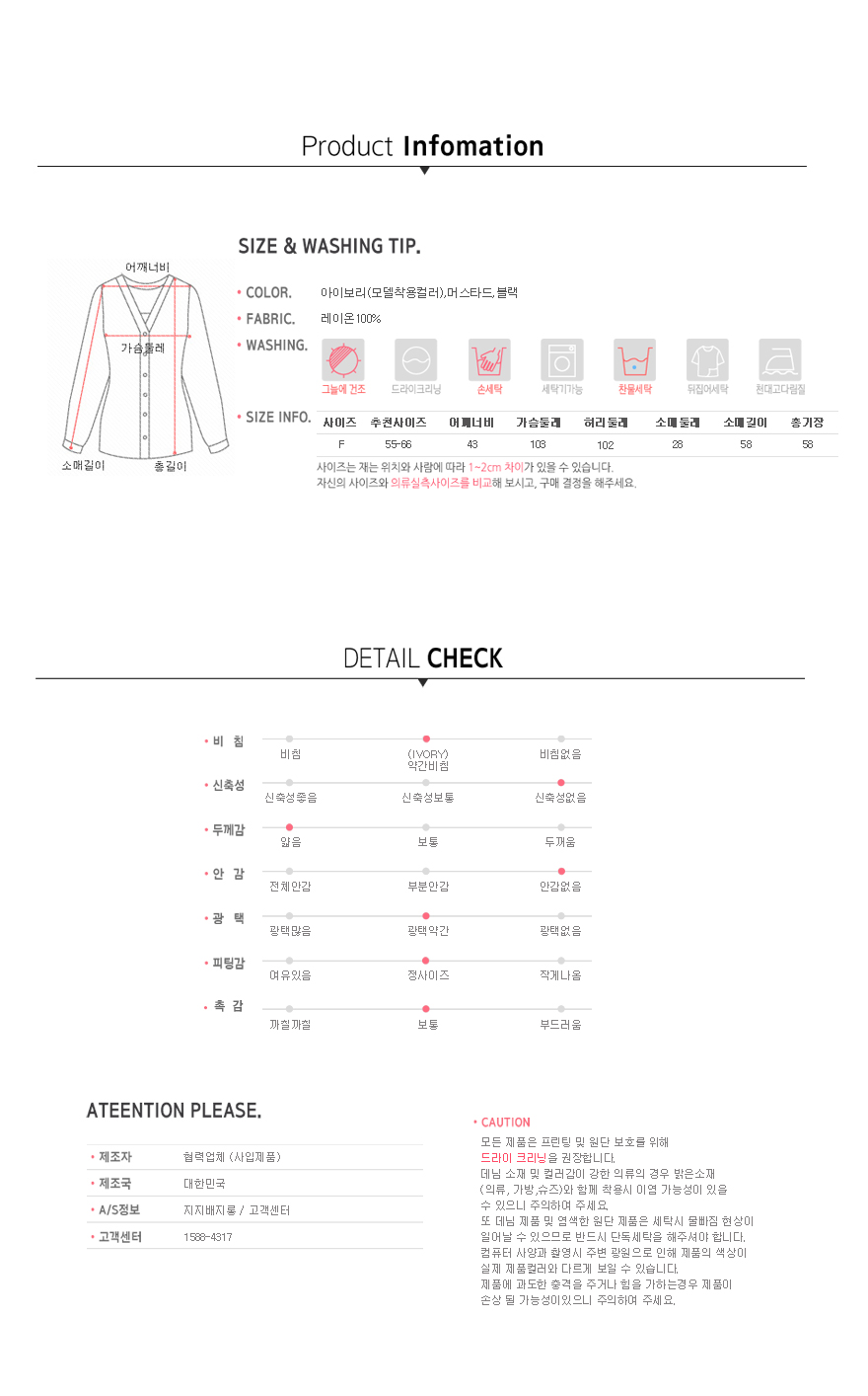 Free 사이즈로 나와 55에서 66까지 분들께 추천해 드려요.
