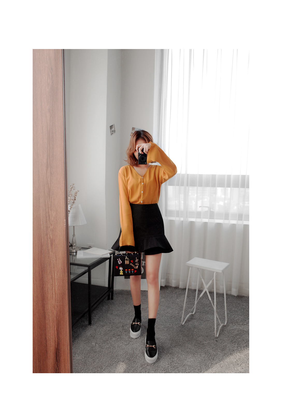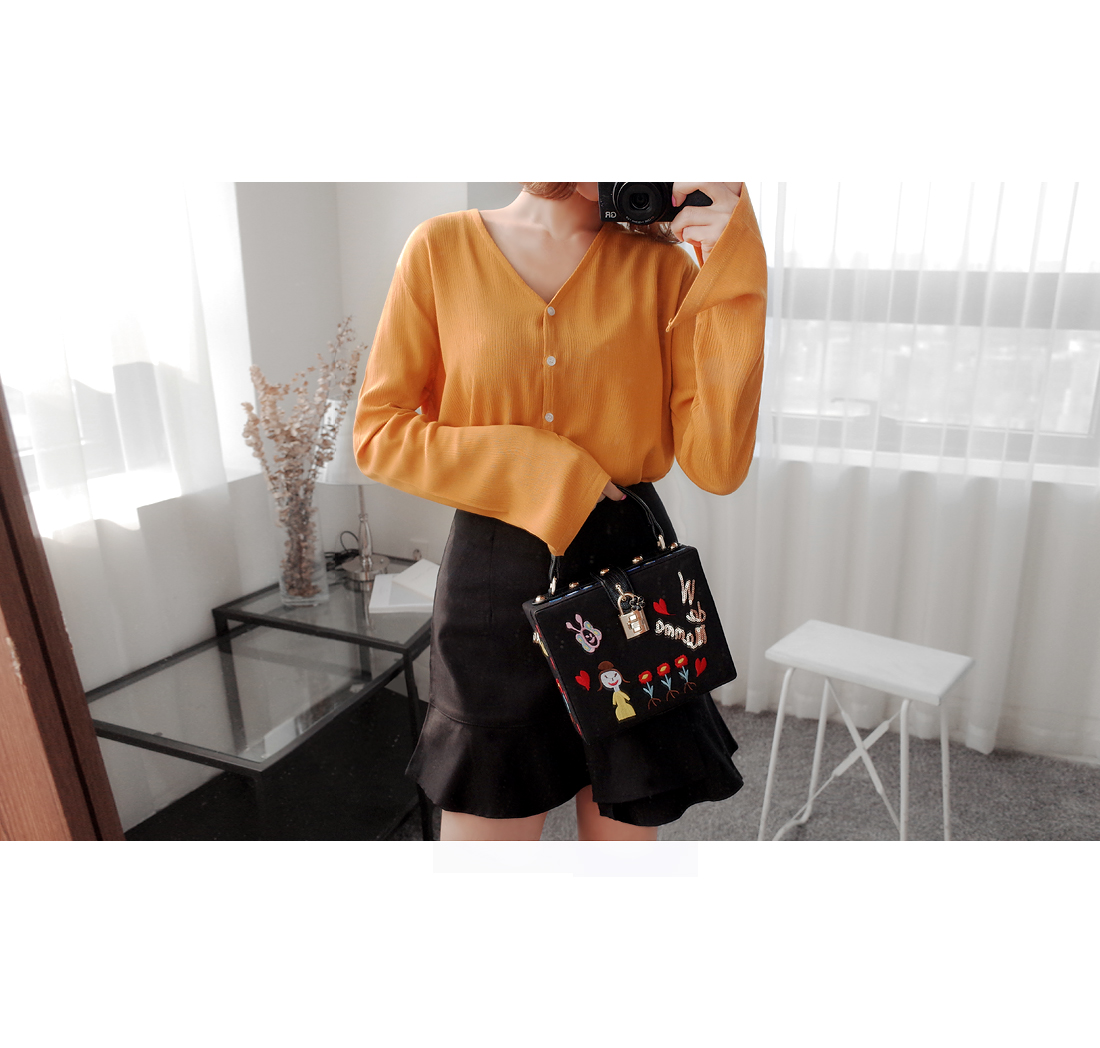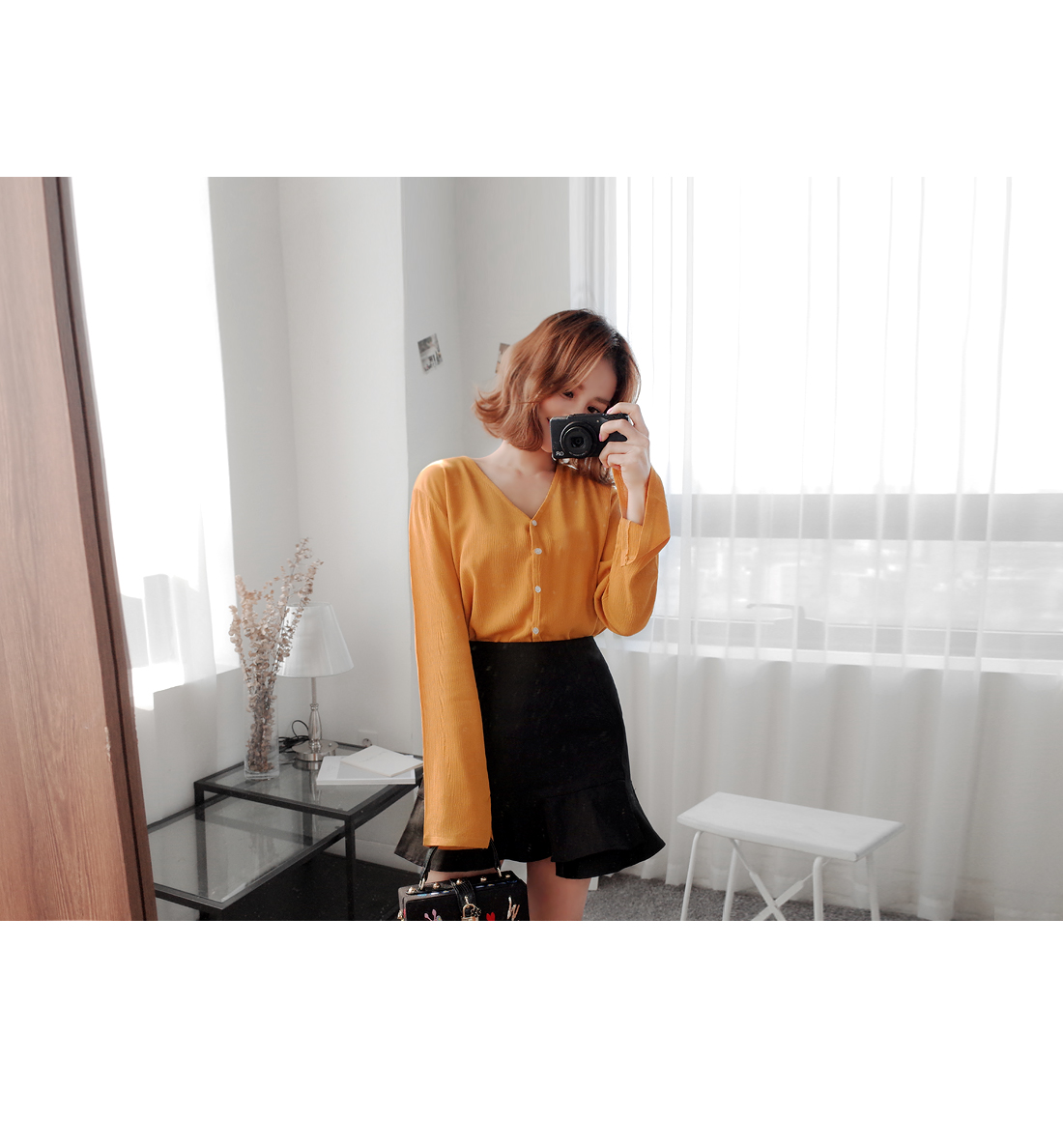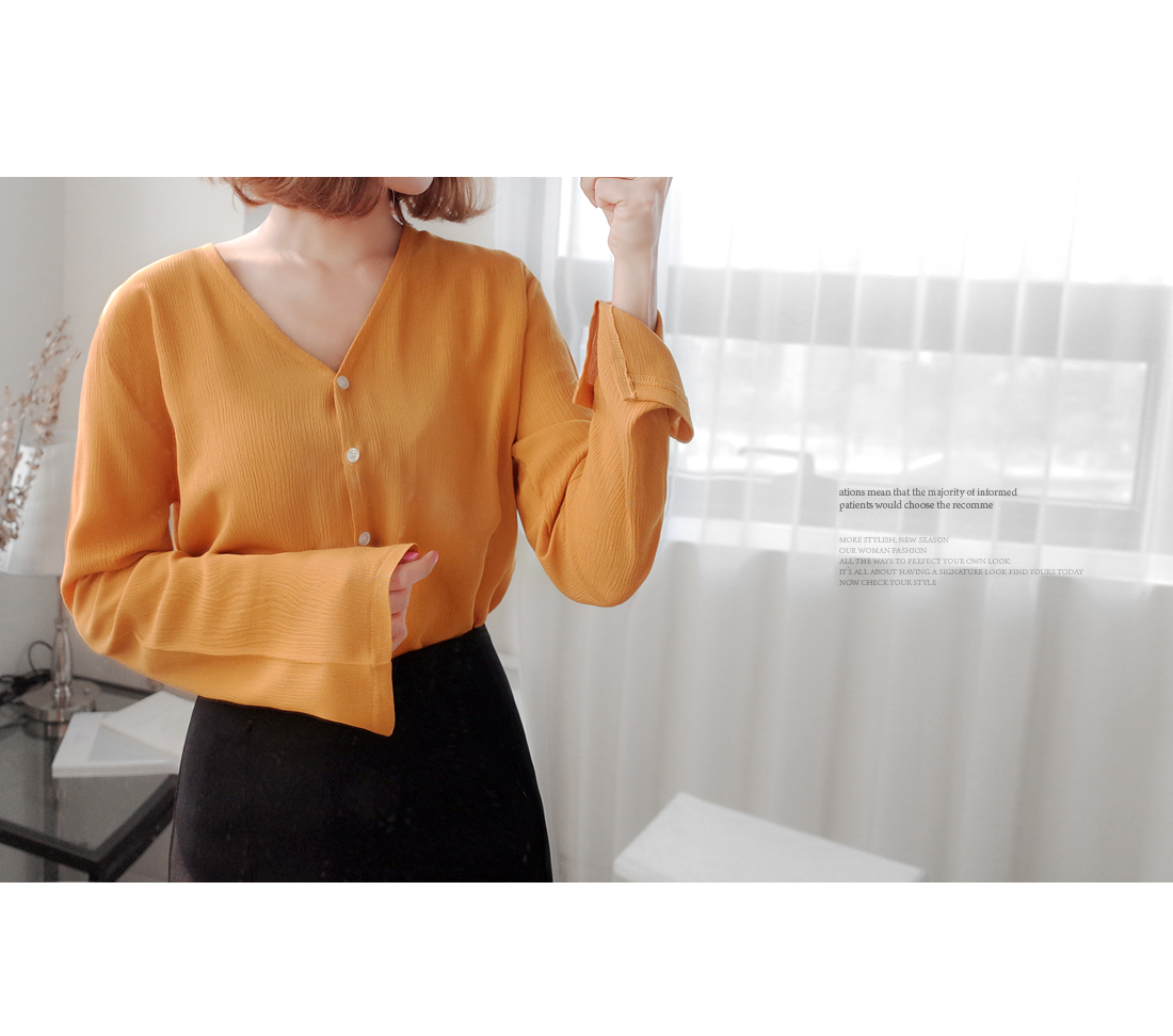 살짝 쇄골라인이 드러나는 V 네크라인으로,