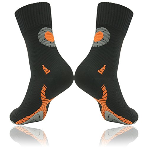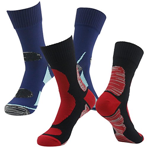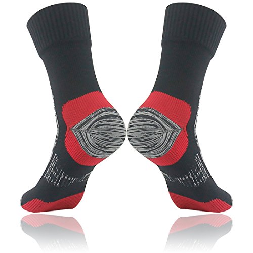 RANDY SUN Men's Mid-Calf Waterproof Highly Breathable Socks Athletic Socks. The waterproof socks can make your feet enjoy freedom of movement all the time, and it is not only wind proof and water proof but also highly moisture and perspiration permeable. Its special three layer design ingeniously solved the contradiction between water proofing property and air permeability. The strong adhesive three layers structure can prevent the external water molecules into socks, meanwhile spread feet sweat during the movement quickly to the outside of the socks. Even in mountain climbing, hiking, running, outdoor cycling, water sports, snow sports, adventure, hunting, fishing, outdoor gardening and so on all kinds of bad environment, it could still keep your feet dry and comfortable. It is also a good choice to use as rain socks in rainy day. Our waterproof and breathable socks is the first choice for outdoor enthusiasts, as well as military personnel, postal personnel, even some special outdoor operation of protective equipment. Its appearance is exactly the same as ordinary socks, and it has very good stretch ability and contractility. 100% seamless, comfortable, dry and warm, so our breathable and waterresistant socks also can be used for daily wearing, change daily beriberi due to the foot sweat and cold feed caused by bad warmth retention property footwear and so on all kinds of discomfort.