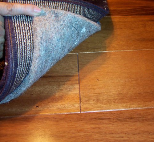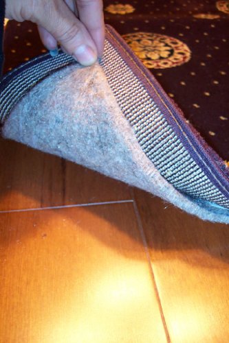 -. Feature : NOTE: No rubber in this pad, so not non slip. May not be suitable for smaller rugs. / 100% Recycled Felt Rug Pad. / Made in the USA. Does not contain any plastics, glues, adhesives, pvc, latex, or rubber. It's 100% safe to use on all floors and won't stain or strip your hardwood floors. / Approximately 3/8" inch thick, Plenty of cushioning to protect your rug and floors.