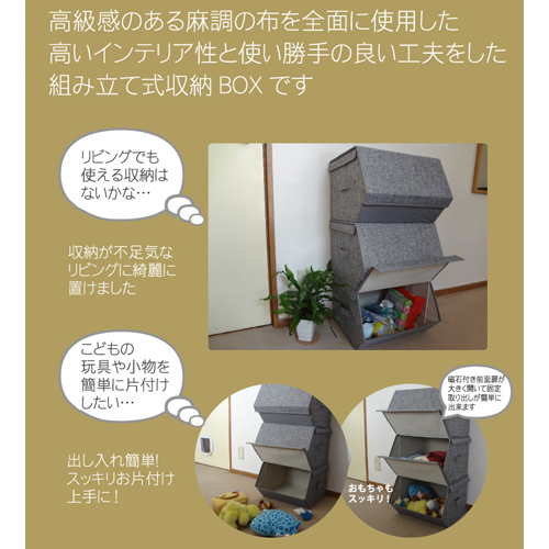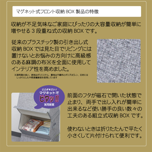●麻調の手前開閉収納BOX・3段まで重ね置き可能でフロント窓はマグネットでピタッと固定