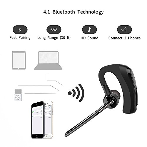 Bluetooth Headset Mono Wireless Earpiece V4.1, Clear Microphone, Pair 2 Cellphones, Left/Right Office Earbud for Car Handsfree Phone Call for iPhone Android Mobile Smartphone Headphone - Tecker X1