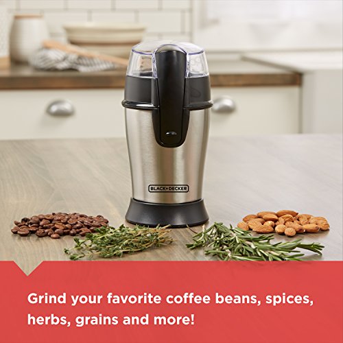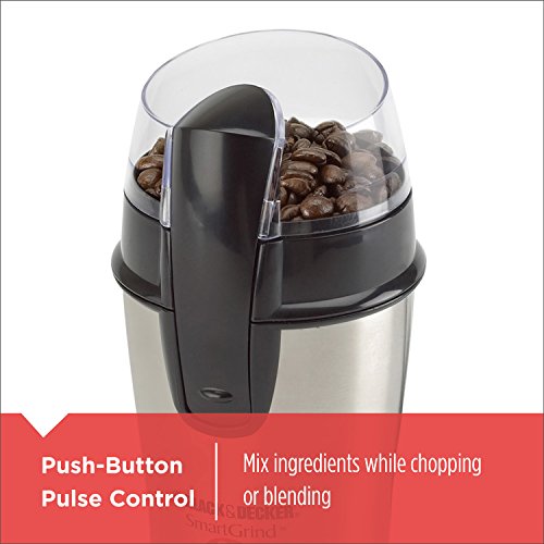 Studio : Black Decker Publisher : Black Decker Platform : Windows Binding : Kitchen Product Description Grind whole beans for up to 12 cups of brewed coffee using the BLACK DECKER SmartGrind Electric Coffee and Spice Grinder with Stainless Steel Blades. The large-capacity grinder features one-touch pulse control and durable stainless steel blades and grinding bowl that quickly provide a uniform grind. It’s also great for grinding herbs, spices, and grains, or chopping nuts and seeds. 0