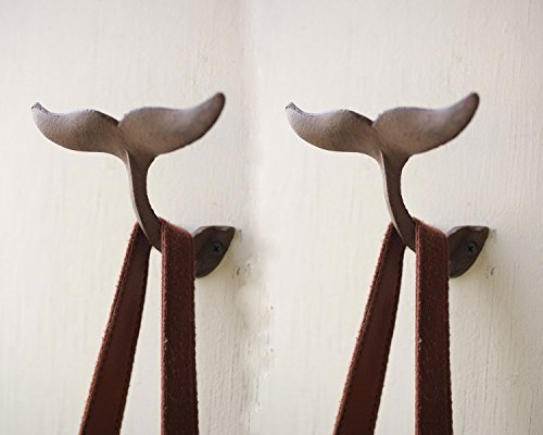 Set of 2 Kalalou Cast Iron Whale's Tail Wall Hook with Mounting Screws. Antique Rustic Brown Finish. 5 Inches Long By 4 Inches Tall By 4 Inches Wide.