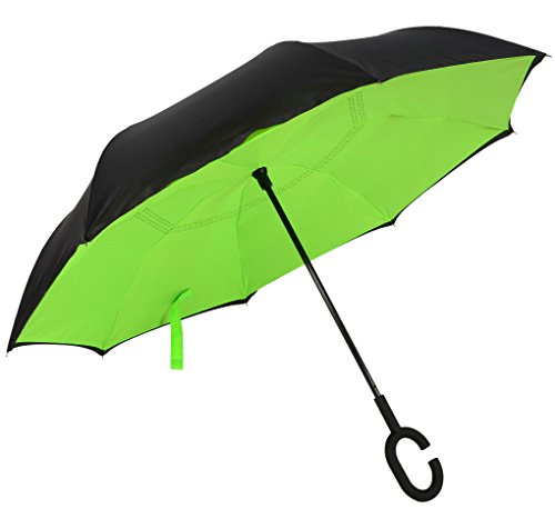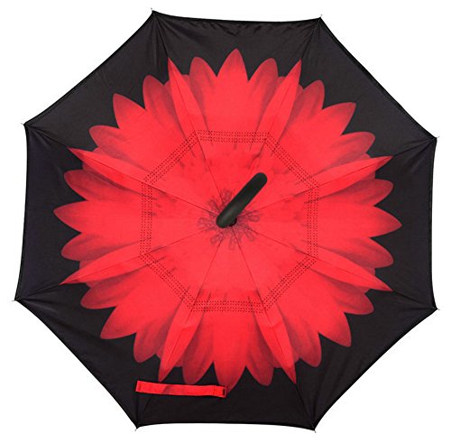 -. Feature : 1. Inverted Umbrella + Umbrella Waterproof Cover for car as one Set: New inverted design, it opens and closes apex down, making getting into and out of a car or other covered area much easier all while shielding you from the rain longer / 2.Anti-ultravrolet - UPF>50+ Sunscreen fabric production, Double layer protection, Light transmittance is "0" / 3.Using the international leading technology: Nano waterproof technology, the windproof effect is three times as common umbrella.Use new inverted rib use durable fiberglass ribs and sturdy aluminum alloy central rob, prevent it from flipping inside out and maintain the elegant rounded shape / 4.C-shaped handle + User-friendly button design. It'll leave your hands free for holding a baby or using a mobile if needed / 5.Big Size: 41.3"(open diameter)*31.5"(length). It's large enough to shelter both you and your loved one from the downpour.