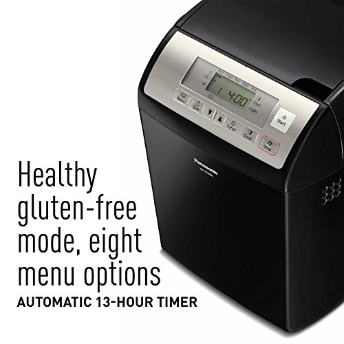 As more people seek healthier lifestyles, they're including gluten free choices in their diet. And with the premium Panasonic YR2500, it's easy to make, bake and enjoy tasty, gluten free breads, and doughs for pasta, pizza and more. But gluten free is only one of the eight bread and eight dough modes you can choose from with this full-featured, fully automatic bread maker. Those who like the tastes and textures of traditional breads and doughs can select their favorite styles as well - and savor the same fresh, scrumptious results. Whatever your preference, this smart, easy-to-use bread maker is ideally suited for all types of flour. Use your own recipes, or an included recipe book features step-by-step directions for the creation of delicious breads and doughs. Choose from basic white, whole wheat and multi-grain breads, French, fruit and nut breads, as well as doughs for pastas, pizza, rolls, croissants and tea cakes. Convenient touch-pad controls and a large LCD screen let you select your style of bread, loaf size (medium or extra large) and light or dark crust. From there, the YR2500 automatically mixes, kneads, rises and bakes your bread to perfection. In the process, smart dispensers automatically add and evenly distribute yeast, plus raisins, dried fruits or chopped nuts at all the right intervals. When done, the non-stick, diamond fluorine-coated inner pan and stay-cool loop handle make removing bread and dough safe and simple, and cleanup quick and easy. A 13-hour preset timer lets you bake bread overnight to enjoy at breakfast, or during the day for fresh bread with dinner.