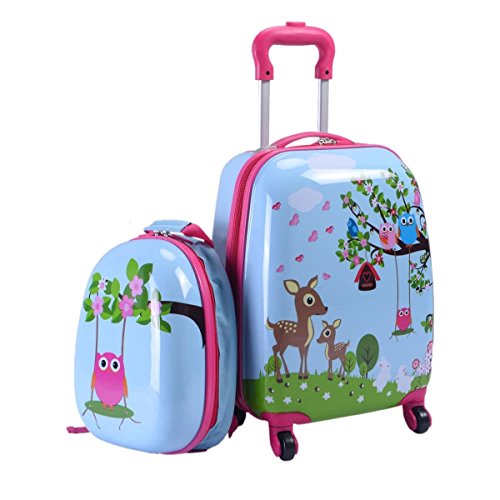 Product Description Get your kids this all new forest meadow animals design that they surely would love. This is fun and so great to look at. A must have item for your children. Set includes: 2 Suitcase; 16' trolley case:16' X 12' X 8.5', 12' backpack:12' X 10' X 4.7' Features: Durable, Lightweight, Fashion, Stylish and Durable | Materials: Polycarbonate / ABS material / Nylon 0