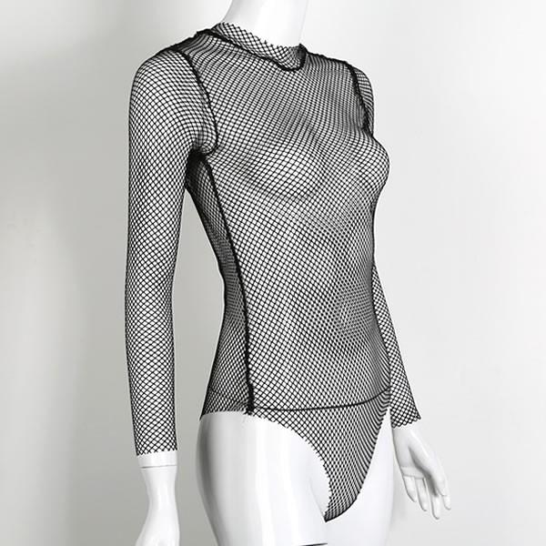 | ハイネック ネット 網ボディースーツ メッシュ 長袖 黒 ブラック 【ハイネック メッシュ トップス セクシー レディース 女性 ダンス衣装 股スナップボタン 着崩れない 黒 black インナー inner 無地】 | |