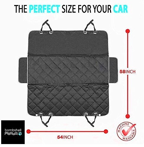-. Binding : Misc. -. Brand : Bombshell Pets -. Feature : 100% SATISFACTION, MONEY-BACK GUARANTEE - We offer you 100% risk-free satisfaction guarantee to let you buy with confidence; no questions asked. -. Label : Bombshell Beachwear -. Manufacturer : Bombshell Beachwear -. PackageQuantity : 1 -. ProductGroup : Pet Products -. ProductTypeName : PET_SUPPLIES -. Publisher : Bombshell Beachwear -. Size : SUV compatible -. Studio : Bombshell Beachwear -. Title : Bombshell Pets Luxury Dog Car Seat Cover for All Vehicles with Side Flaps and Seat Anchors - Hammock Style, Machine Washable Non Slip and Waterproof