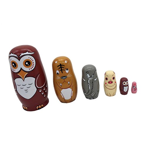 -. Title : Dovewill Pack of 6pcs Cute exquisite Hand Painted Owl Wooden Nesting Dolls Animal Matryoshka Russian Doll Gifts
