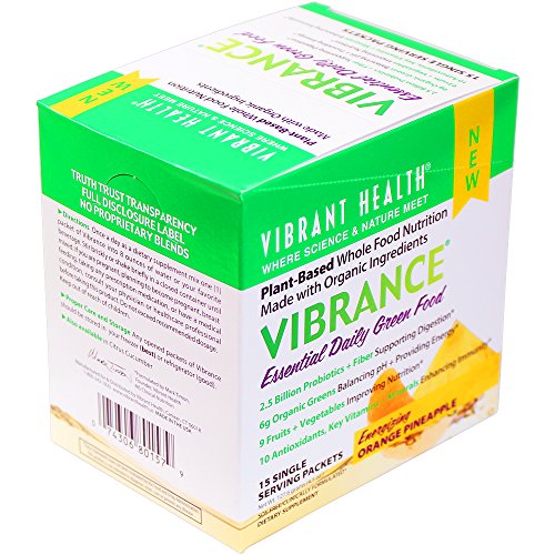 -. Title : Vibrant Health - Vibrance Orange Pineapple - Energizing Plant-Based Green Food Supplement Made with Organic Ingredients, 15 packets