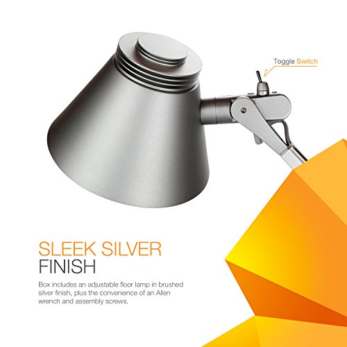 SLEEK SILVER FINISH: Box includes an adjustable floor lamp in brushed silver finish, plus the convenience of an Allen wrench and assembly screws.