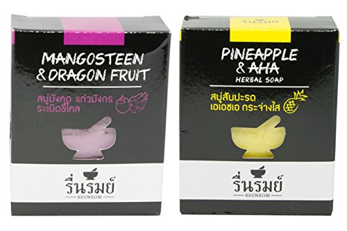 SET REUNROM PINEAPPLE & AHA + MAGOSTEEN DRAGON FRUIT HERBAL NATURAL BATH & BODY BAR SOAP BRIGHTENING WHITENING SOFT SMOOTH SKIN