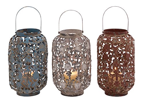 -. Title : Deco 79 Metal Glass Lantern, 3 Assorted, 7 by 12"