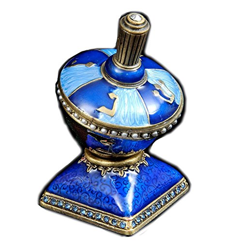 Enameled Metal Dreidel for Display With Matching Stand, Jeweled Highlights, Gift Boxed, Blue