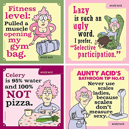 Tree-Free Greetings Hilarious Aunty Acid Magnet 4 Piece Set, 3.5 x 3.5 Inches, Fitness Level Magnets (FM31176)
