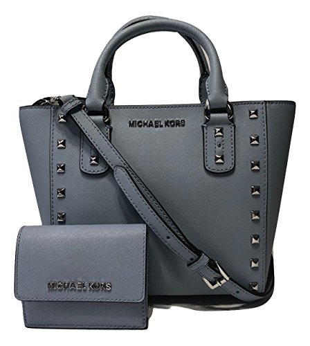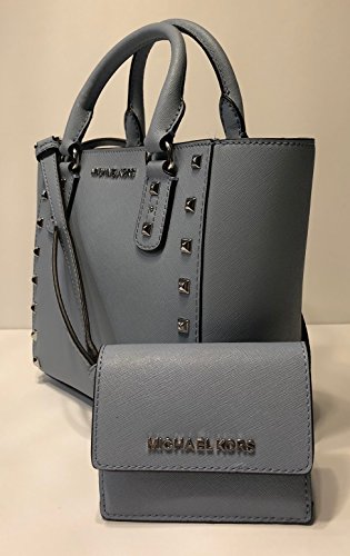 Bundle of 2 items: MICHAEL Michael Kors Sandrine Studded SM Crossbody bundled with Michael Kors Jet Set Travel Card Case ID Key Holder Wallet Pale Blue