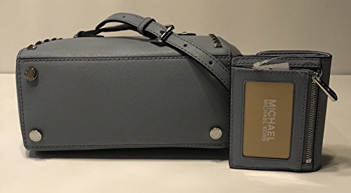 MICHAEL Michael Kors Sandrine Studded SM Crossbody bundled with Michael Kors Jet Set Travel Card Case ID Key Holder Wallet Pale Blue