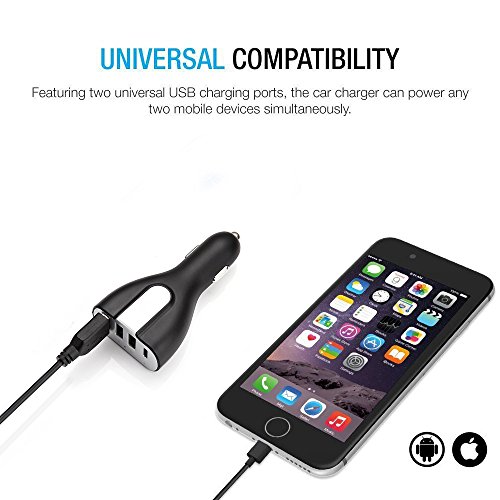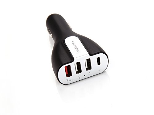 -. Title : CHARGED 4 Port USB Car Charger with USB C and QC 3.0 Fast Charging