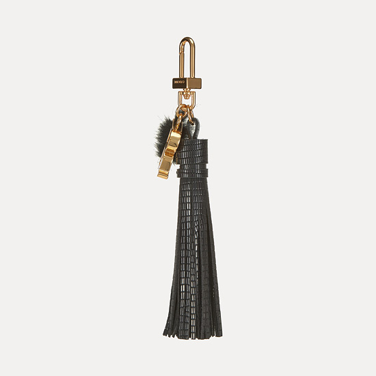 - 쿠론의 'R' 이니셜에 밍크 퍼로 포인트를 준 Muse(뮤즈) Tassel Keyring.