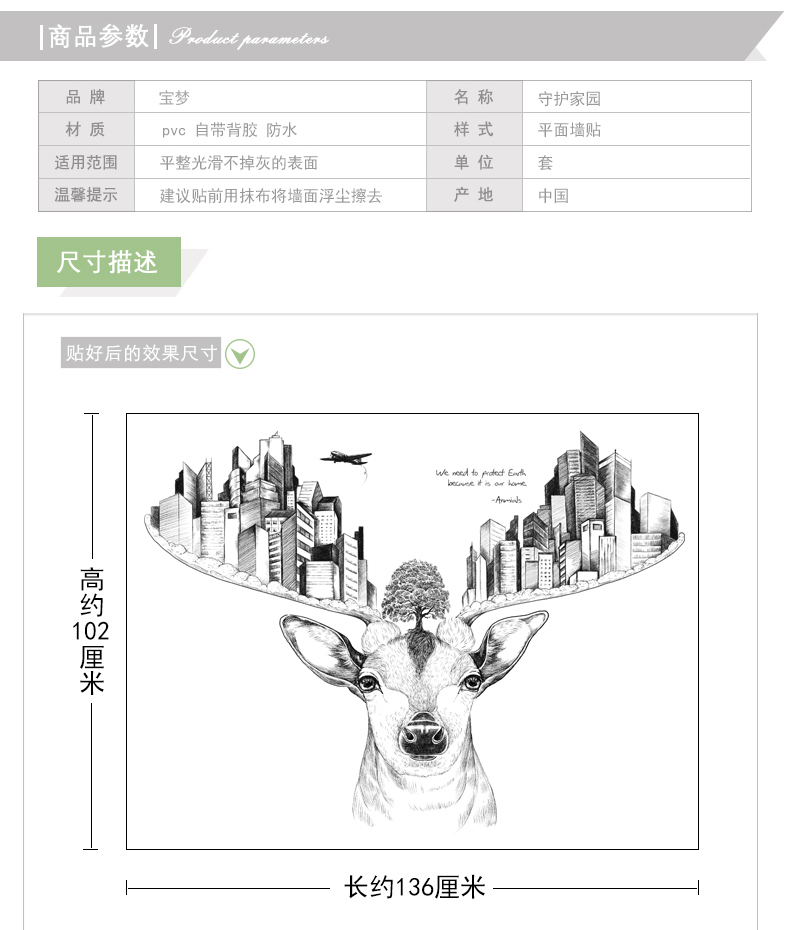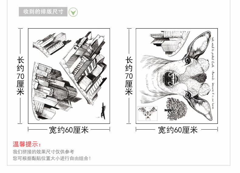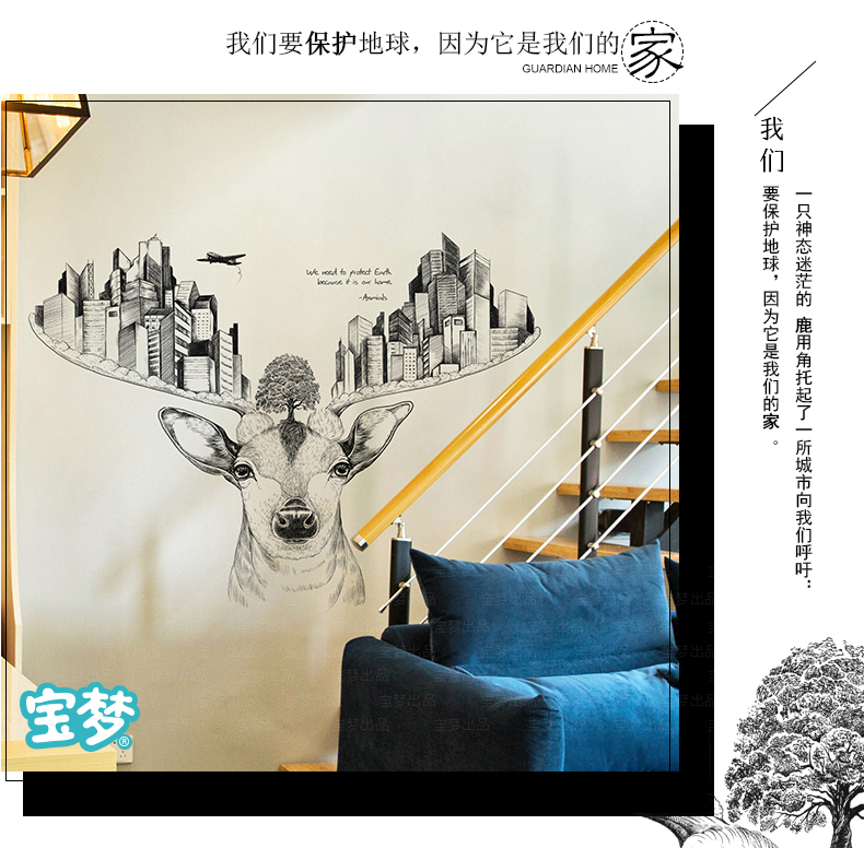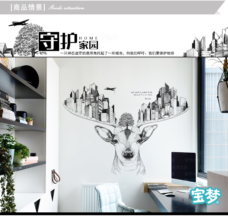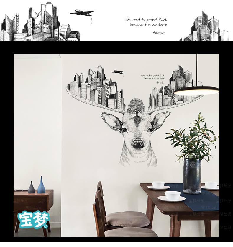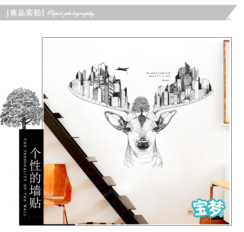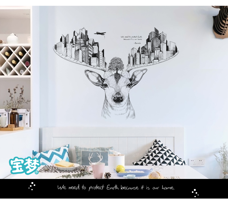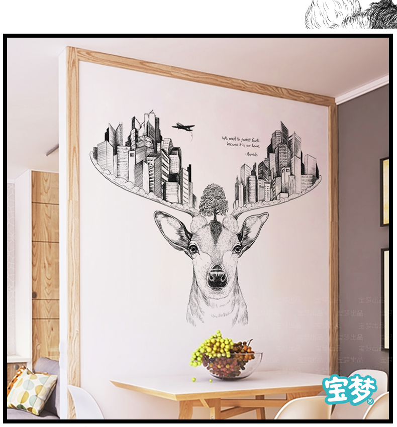 创意麋鹿卧室床头客厅走廊沙发背景墙贴纸现代城市建筑装饰品贴画