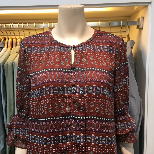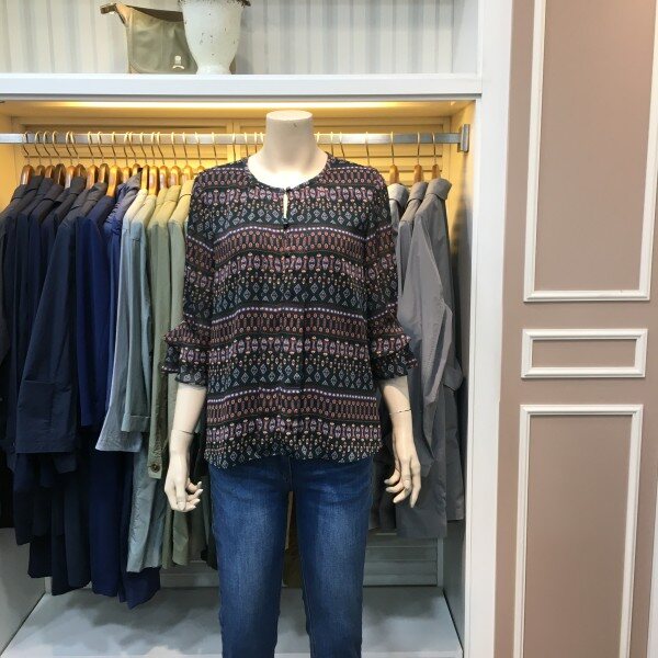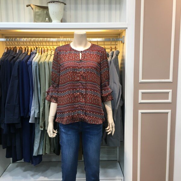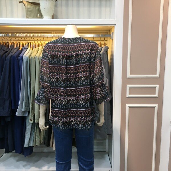 7부 소매 기장감의 쉬폰 블라우스입니다