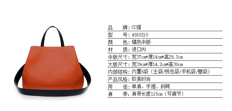 • 内部结构: 拉链暗袋 手机袋 证件袋 夹层拉链袋