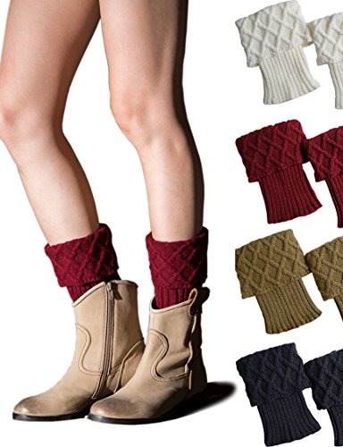 -. Title : Womens Boots Cuffs Socks Leg Warmers Boot Toppers Accessory Short Cable Knit 8 Colors Single or 4 Pack