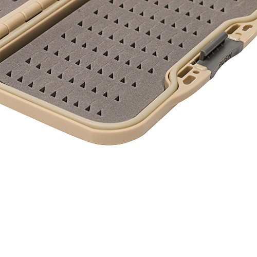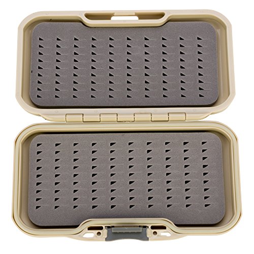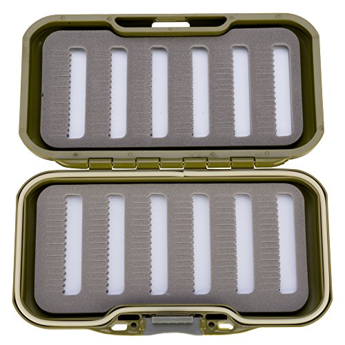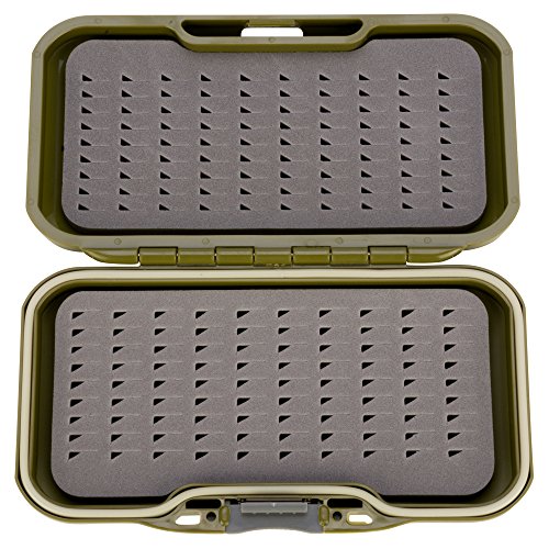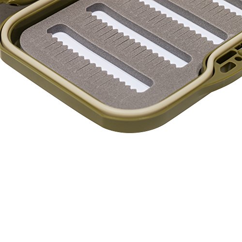 -. Feature : EASY, ONE-HANDED OPERATION: Long time favorite of fly anglers, single handed push button operation for a quick, easy-open on the stream. / SLIM AND COMPACT DESIGN: This handy fishing box perfectly fits any pocket. Compact and slim profile of the box allows you to carry a wide variety of flies without excess bulk. / WATERPROOF: This waterproof fly fishing box will keep your nymphs and flies safe and dry. Will stay dry in your pocket even when you're wading in the water. / TWO COLORS: Choose from olive and sand. This fly fishing box is perfect for fishers of all ages, young and old. / TWO FOAM STYLES: Your choice of slit foam or teardrop foam. Buy both options to store different types of flies.