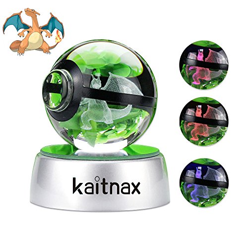 3D Laser Etched Crystal Ball(50mm) Puzzle With LED Base (Charizard 1)