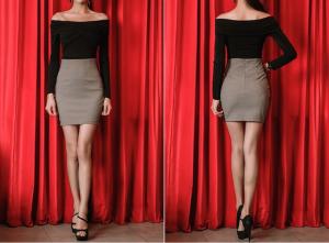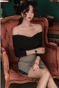 オフショルワンピース タイト セクシー ハイウエスト 7分袖 ミニ丈 カシュクール レトロ オールシーズン
