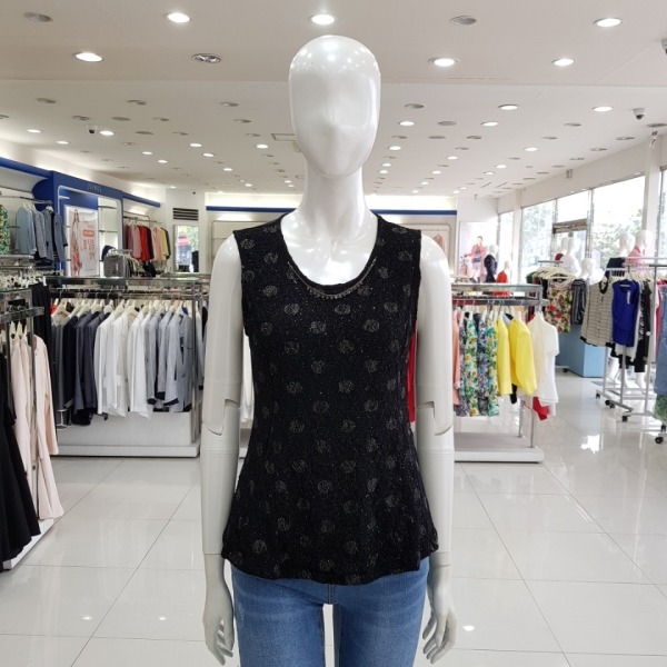 앞판 반짝이 펄망사 나시티셔츠-CA7U4-WKT910-450블랙