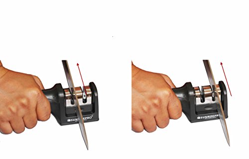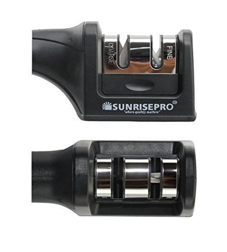 PEACE OF MIND WITH CONFIDENCE: You don't need years of experience to be able to sharpens your knives. Out of the box, SUNRISEPRO Kitchen Knife Sharpener enables you to achieve razor sharp kitchen knives.