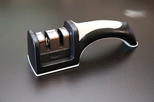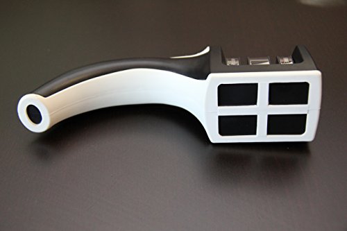 EASY TO HOLD AND SHARPENS VERY FAST - Small enough to easily fit in a utensil drawer. Very well made. PLEASE NOTE - This kitchen knife sharpener was built to work with steel knives only, and it should not be utilized with ceramic or serrated knives.