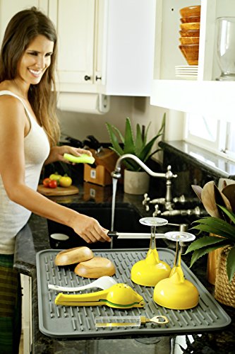 - SO MANY USES – In addition to being a high-quality, durable, dish-drying mat, it also doubles as a heat-resistant trivet (up to 450º) for your table and countertop, perfect as a pet mat, fridge liner, cupboard liner. So many uses, you'll be amazed you lived without it.