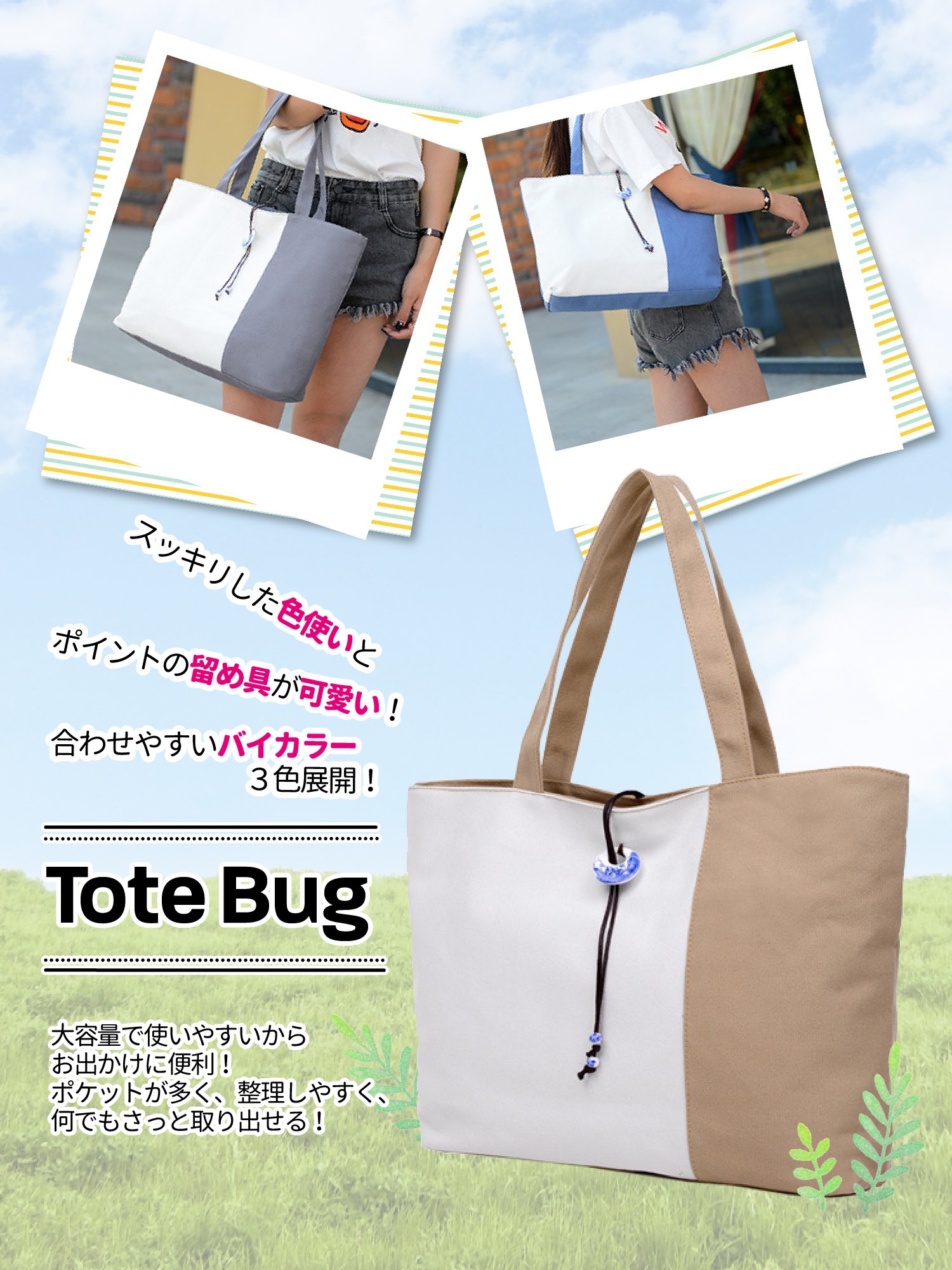 Because it is strong and easy to use, it is a tote bag that stands about everyday use such as commuting, going to school or going out to your neighborhood