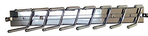 The sliding, polished chrome tie rack with a new "touch open" feature was designed for closet installers and interior designers, but is now available directly to the end user. Similar to the soft close drawer mechanism, the tie rack opens with a push, and then locks in place with retracted. Constructed of steel, this item is functional, sturdy, and beautiful. The sleekly integrated tie rack has 8 double hooks to accommodate at least 16 ties. The rack is designed to fit in a 14 inch or deeper partition. It comes with the 2 screws to install directly into most predrilled systems. A perfect compliment for the push to open sliding tie rack and valet rod in matching finishes. These items are also available in satin nickel and oil rubbed bronze.