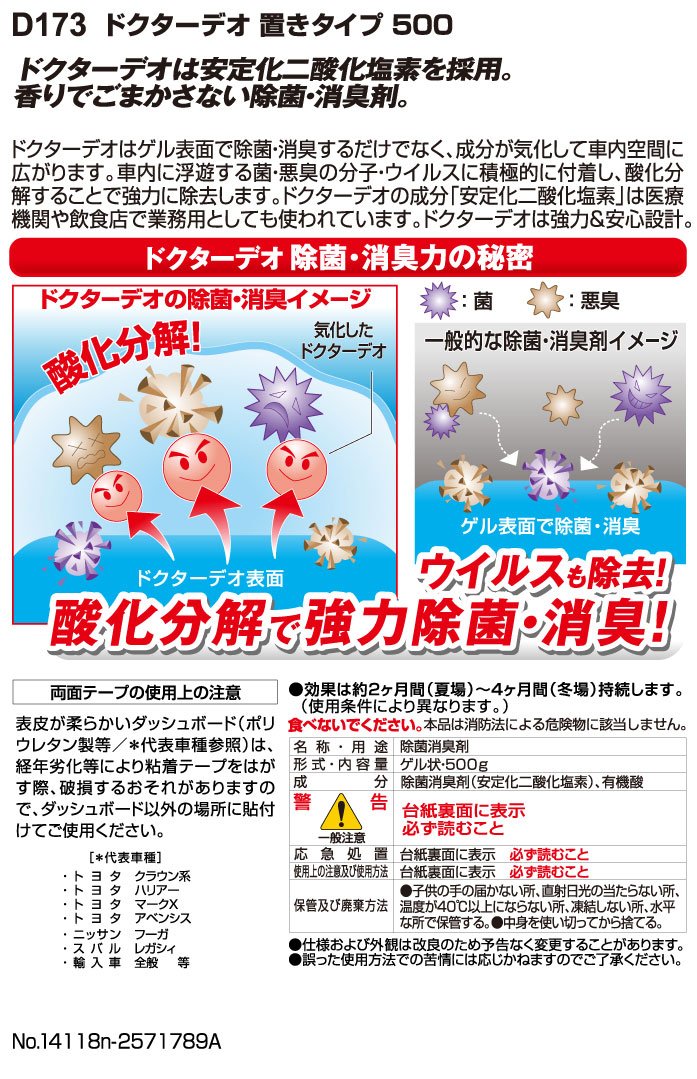 Carmate vehicles for decontamination deodorant Doctor Deo (Dr.DEO) large-standing virus removal unscented stabilized chlorine dioxide 500g D173