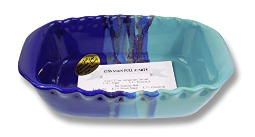 • Handmade and hand decorated 1.25 quart loaf pan by Clay In Motion (includes a bonus Cinnamon Pull-Aparts recipe card)