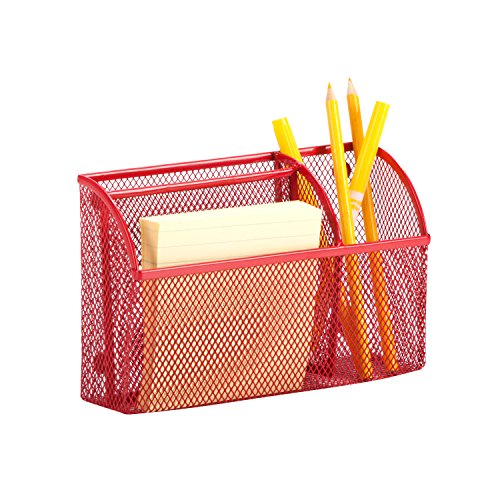 Honey-Can-Do OFC-04863 3-Comparment Mesh Magnetic Desk Organizer, Red